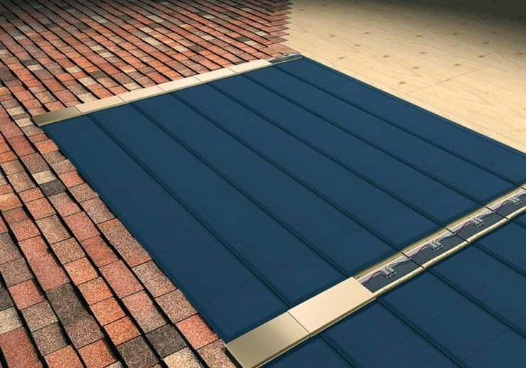 Высокотехнологичная фотогальваническая гибкая черепица ТЕГОСОЛАР, интегрированная в кровельное покрытие. Способна моментально трансформировать солнечную энергию в электроэнергию, используя так называемый «фотоэлектрический эффект».