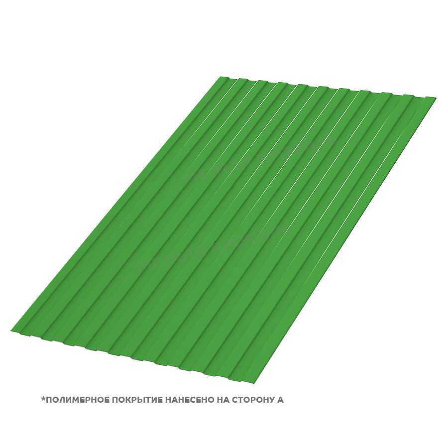 Профилированный лист С-8x1150-A (ПЭ-01-6018-0,5) — популярный материал в Луге для монтажа забора. Представляет собой металлический оцинкованный лист с покрытием. Толщина металла с цинковым и декоративно-защитным слоем — 0.5 мм.Проходя процедуру холодного проката, металл приобретает рисунок из повторяющихся волн. Такая форма придает профилю несущую способность.