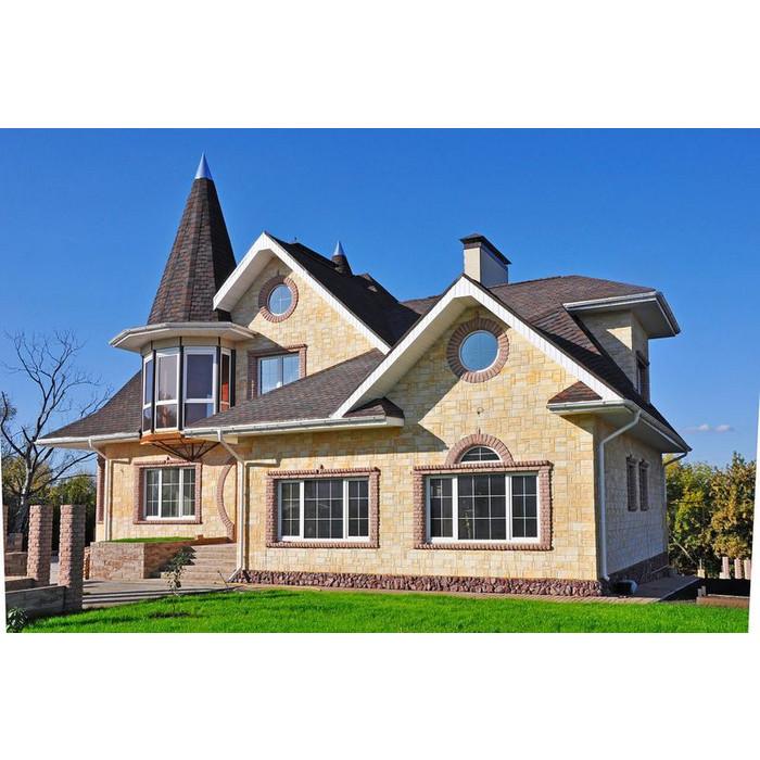 Архитектурная гибкая черепица ТЕХНОНИКОЛЬSHINGLAS коллекция КОНТИНЕНТ – это штучный битумосодержащий кровельный трехслойный материал. Изготавливается нарезанием листов из рулонного материала, получаемого путем пропитки и покрытия стекловолокнистой основы битумным вяжущим, с последующим нанесением различных видов защитных покрытий и склейкой трех листов разной формы. Рисунок кровли объемный, рельефный, эксклюзивный. Гарантийный срок службы – 60 лет.