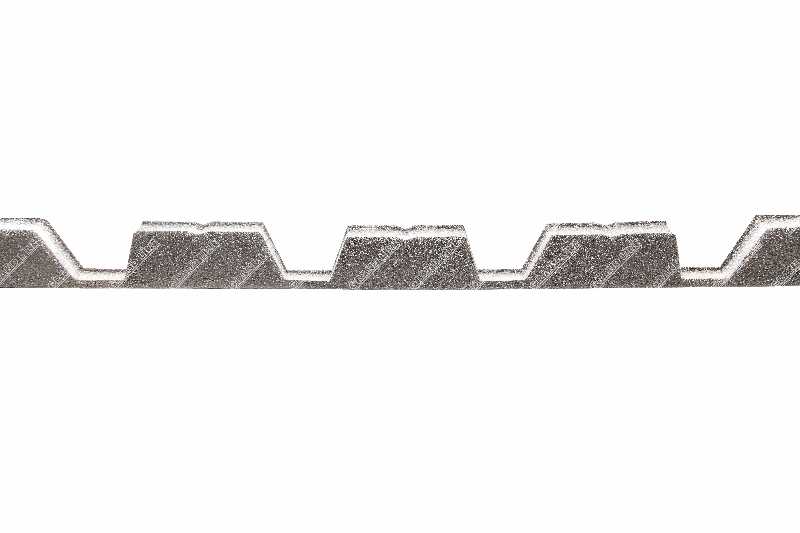 Профильный уплотнитель производится из вспененного полиэтилена, что обеспечивает тепло и шумоизоляцию, предохраняет от попадания влаги и пыли. Такой уплотнитель коньковый для профлиста повторяет форму основного укрытия кровли - профнастила/металлочерепицы.